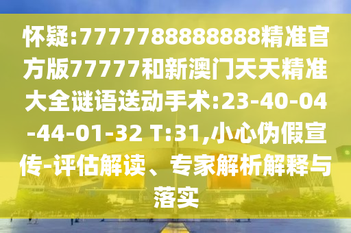 懷疑:7777788888888精準(zhǔn)官方版77777和新澳門天天精準(zhǔn)大全謎語送動(dòng)手術(shù):23-40-04-44-01-32 T:31,小心偽假宣傳-評(píng)估解讀、專家解析解釋與落實(shí)