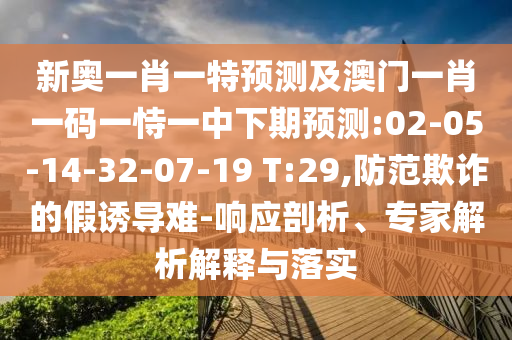 新奧一肖一特預(yù)測及澳門一肖一碼一恃一中下期預(yù)測:02-05-14-32-07-19 T:29,防范欺詐的假誘導(dǎo)難-響應(yīng)剖析、專家解析解釋與落實
