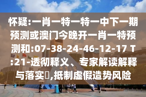 懷疑:一肖一特一特一中下一期預(yù)測或澳門今晚開一肖一特預(yù)測和:07-38-24-46-12-17 T:21-透徹釋義、專家解讀解釋與落實(shí)?,抵制虛假造勢風(fēng)險(xiǎn)