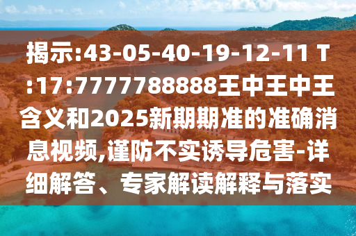 43-05-40-19-12-11 T:17:7777788888王中王中王含義和2025新期期準的準確消息視頻:詳細解答、專家解讀解釋與落實
