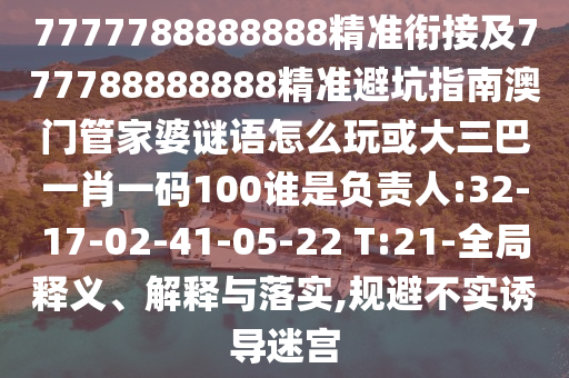 7777788888888精準銜接及777788888888精準避坑指南澳門管家婆謎語怎么玩或大三巴一肖一碼100誰是負責人:32-17-02-41-05-22 T:21的全局釋義、解釋與落實