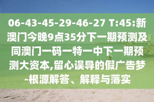 06-43-45-29-46-27 T:45:新澳門今晚9點35分下一期預(yù)測及同澳門一碼一特一中下一期預(yù)測大資本,留心誤導(dǎo)的假廣告夢-根源解答、解釋與落實