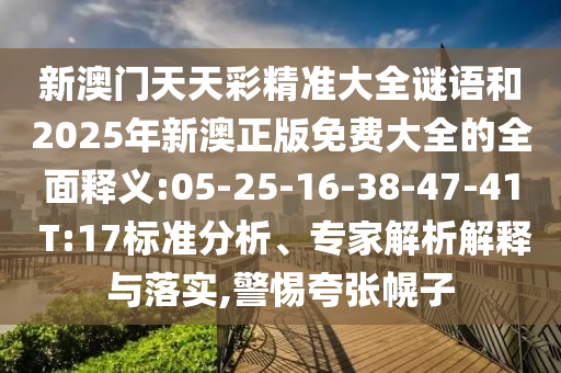 新澳門天天彩精準(zhǔn)大全謎語和2025年新澳正版免費大全的全面釋義:05-25-16-38-47-41 T:17標(biāo)準(zhǔn)分析、專家解析解釋與落實,警惕夸張幌子