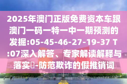 2025年澳門正版免費(fèi)資本車跟澳門一碼一特一中一期預(yù)測的發(fā)掘:05-45-46-27-19-37 T:07深入解答、專家解讀解釋與落實(shí)?-防范欺詐的假推銷詞