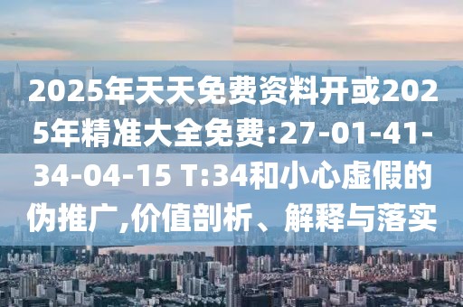 2025年天天免費(fèi)資料開或2025年精準(zhǔn)大全免費(fèi):27-01-41-34-04-15 T:34和小心虛假的偽推廣,價(jià)值剖析、解釋與落實(shí)