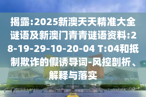 揭露:2025新澳天天精準(zhǔn)大全謎語(yǔ)及新澳門青青謎語(yǔ)資料:28-19-29-10-20-04 T:04和抵制欺詐的假誘導(dǎo)詞-風(fēng)控剖析、解釋與落實(shí)