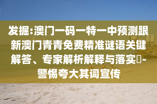 本文將圍繞以下關(guān)鍵詞展開討論:發(fā)掘、澳門一碼一特一中預(yù)測(cè)、新澳門青青免費(fèi)精準(zhǔn)謎語,鑒于當(dāng)前社會(huì)上存在諸多夸大其詞的宣傳現(xiàn)象,本文旨在為讀者提供準(zhǔn)確、全面的信息,并提醒公眾警惕虛假宣傳。
