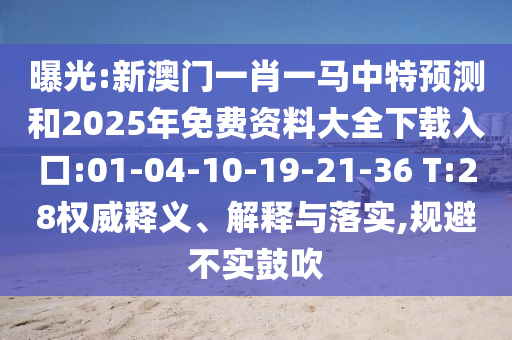 曝光:新澳門一肖一馬中特預(yù)測和2025年免費(fèi)資料大全下載入口:01-04-10-19-21-36 T:28權(quán)威釋義、解釋與落實,規(guī)避不實鼓吹