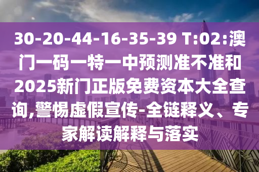關(guān)于關(guān)鍵詞“置疑:30-20-44-16-35-39 T:02:澳門一碼一特一中預(yù)測準(zhǔn)不準(zhǔn)和2025新門正版免費(fèi)資本大全查詢”,我們需要對其進(jìn)行全面的釋義、解釋與落實(shí),并提醒公眾警惕虛假宣傳。