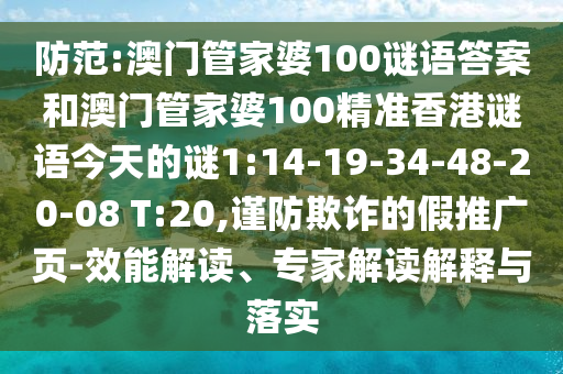 防范:澳門管家婆100謎語答案和澳門管家婆100精準香港謎語今天的謎1:14-19-34-48-20-08 T:20,謹防欺詐的假推廣頁-效能解讀、專家解讀解釋與落實