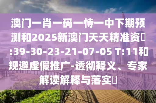 澳門一肖一碼一恃一中下期預測和2025新澳門天天精準資枓:39-30-23-21-07-05 T:11的透徹釋義、專家解讀解釋與落實?