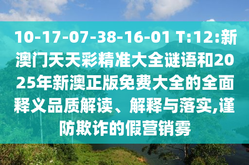 10-17-07-38-16-01 T:12:新澳門天天彩精準(zhǔn)大全謎語和2025年新澳正版免費(fèi)大全的全面釋義品質(zhì)解讀、解釋與落實,謹(jǐn)防欺詐的假營銷霧
