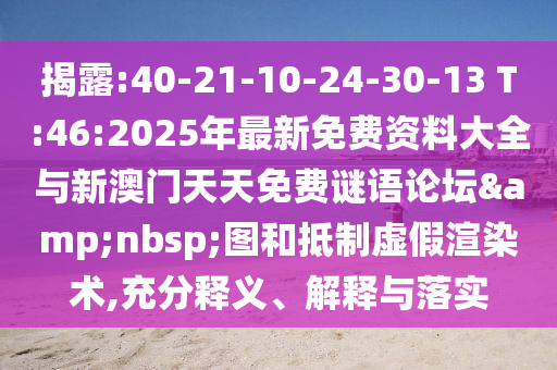 揭露:40-21-10-24-30-13 T:46:2025年最新免費資料大全與新澳門天天免費謎語論壇 圖和抵制虛假渲染術,充分釋義、解釋與落實
