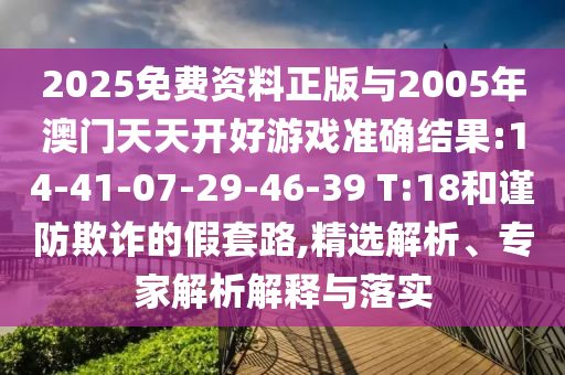 2025免費(fèi)資料正版與2005年澳門天天開好游戲準(zhǔn)確結(jié)果:14-41-07-29-46-39 T:18和謹(jǐn)防欺詐的假套路,精選解析、專家解析解釋與落實(shí)