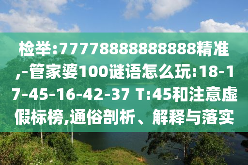 檢舉:77778888888888精準,-管家婆100謎語怎么玩:18-17-45-16-42-37 T:45和注意虛假標榜,通俗剖析、解釋與落實