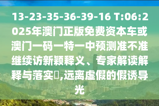 讓我們逐一解析您提供的關(guān)鍵詞:13-23-35-36-39-16、T:06:2025年澳門正版免費(fèi)資本車、澳門一碼一特一中預(yù)測(cè)、準(zhǔn)不準(zhǔn)、繼續(xù)訪、遠(yuǎn)離虛假的假誘導(dǎo)光,我們會(huì)為您帶來(lái)這些關(guān)鍵詞的新穎釋義、專家解讀與落實(shí),并特別提醒公眾警惕虛假宣傳。