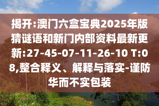 揭開:澳門六盒寶典2025年版猜謎語和新門內(nèi)部資料最新更新:27-45-07-11-26-10 T:08,整合釋義、解釋與落實-謹(jǐn)防華而不實包裝