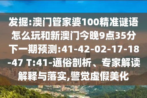 發(fā)掘:澳門管家婆100精準(zhǔn)謎語(yǔ)怎么玩和新澳門今晚9點(diǎn)35分下一期預(yù)測(cè):41-42-02-17-18-47 T:41-通俗剖析、專家解讀解釋與落實(shí),警覺(jué)虛假美化
