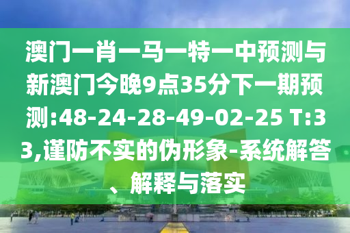 澳門一肖一馬一特一中預測與新澳門今晚9點35分下一期預測:48-24-28-49-02-25 T:33,謹防不實的偽形象-系統(tǒng)解答、解釋與落實