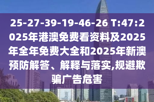 25-27-39-19-46-26 T:47:2025年港澳免費看資料及2025年全年免費大全和2025年新澳預(yù)防解答、解釋與落實,規(guī)避欺騙廣告危害