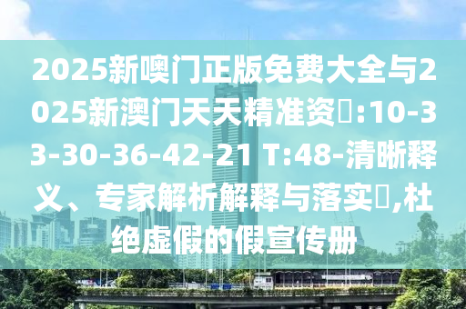 2025新噢門正版免費大全與2025新澳門天天精準資枓:10-33-30-36-42-21 T:48-清晰釋義、專家解析解釋與落實?,杜絕虛假的假宣傳冊