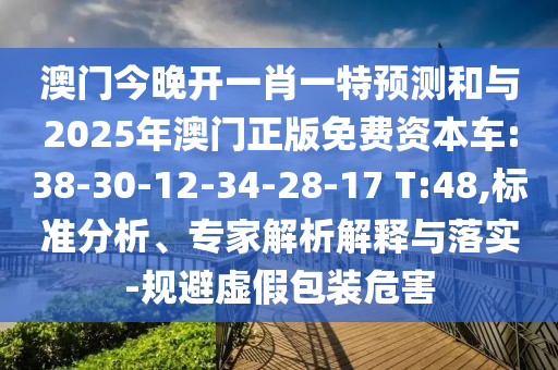 澳門今晚開一肖一特預(yù)測和與2025年澳門正版免費資本車:38-30-12-34-28-17 T:48,標(biāo)準(zhǔn)分析、專家解析解釋與落實-規(guī)避虛假包裝危害