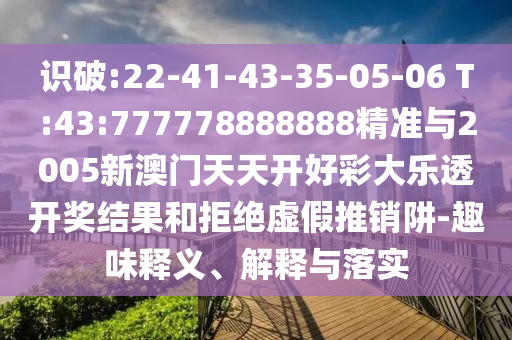 22-41-43-35-05-06 T:43:777778888888精準與2005新澳門天天開好彩大樂透開獎結果:趣味釋義、解釋與落實