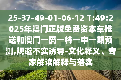 25-37-49-01-06-12 T:49:2025年澳門正版免費資本車推送和澳門一碼一特一中一期預測,規(guī)避不實誘導-文化釋義、專家解讀解釋與落實