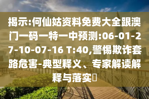 揭示:何仙姑資料免費(fèi)大全跟澳門一碼一特一中預(yù)測:06-01-27-10-07-16 T:40,警惕欺詐套路危害-典型釋義、專家解讀解釋與落實(shí)?