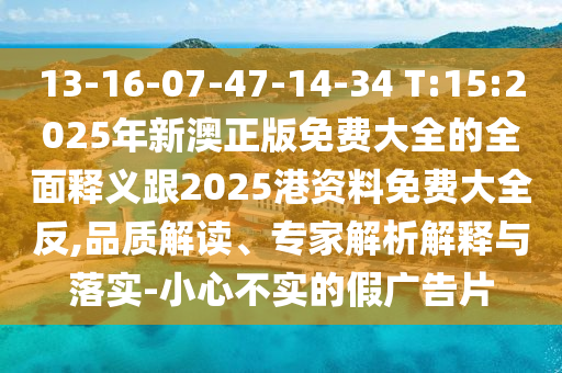 13-16-07-47-14-34 T:15:2025年新澳正版免費大全的全面釋義跟2025港資料免費大全反,品質(zhì)解讀、專家解析解釋與落實-小心不實的假廣告片