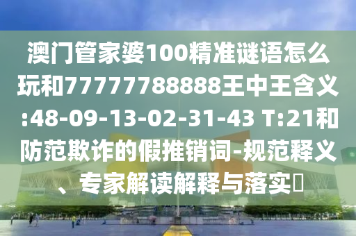 澳門管家婆100精準(zhǔn)謎語怎么玩和77777788888王中王含義:48-09-13-02-31-43 T:21的規(guī)范釋義、專家解讀解釋與落實(shí)?