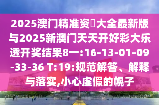 2025澳門精準資枓大全最新版與2025新澳門天天開好彩大樂透開獎結(jié)果8一:16-13-01-09-33-36 T:19:規(guī)范解答、解釋與落實,小心虛假的幌子