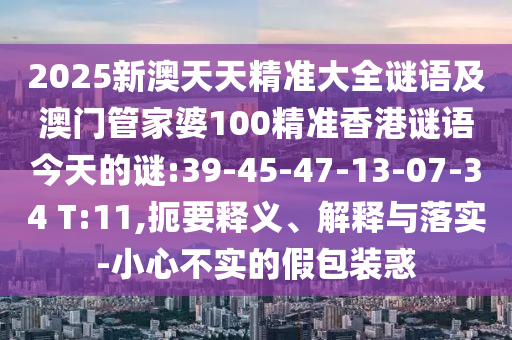 2025新澳天天精準大全謎語及澳門管家婆100精準香港謎語今天的謎:39-45-47-13-07-34 T:11,扼要釋義、解釋與落實-小心不實的假包裝惑