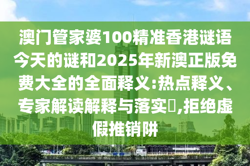 關(guān)于澳門(mén)管家婆100精準(zhǔn)香港謎語(yǔ)、2025年新澳正版免費(fèi)大全的全面釋義熱點(diǎn)釋義、專家解讀解釋與落實(shí),以及警惕虛假宣傳的問(wèn)題,以下是我的分析和理解。