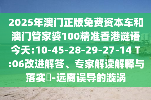 2025年澳門正版免費(fèi)資本車和澳門管家婆100精準(zhǔn)香港謎語今天:10-45-28-29-27-14 T:06改進(jìn)解答、專家解讀解釋與落實?-遠(yuǎn)離誤導(dǎo)的漩渦
