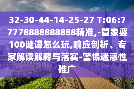 關(guān)于關(guān)鍵詞“32-30-44-14-25-27 T:06:777788888888精準(zhǔn),-管家婆100謎語怎么玩,警惕迷惑性推廣”的解析與解讀