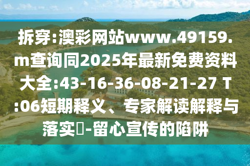拆穿:澳彩網(wǎng)站www.49159.m查詢同2025年最新免費(fèi)資料大全:43-16-36-08-21-27 T:06短期釋義、專家解讀解釋與落實(shí)?-留心宣傳的陷阱
