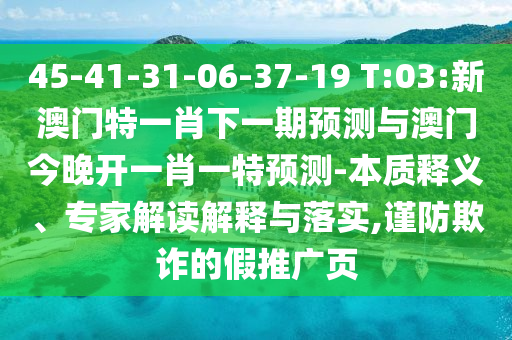 45-41-31-06-37-19 T:03:新澳門特一肖下一期預測與澳門今晚開一肖一特預測-本質釋義、專家解讀解釋與落實,謹防欺詐的假推廣頁