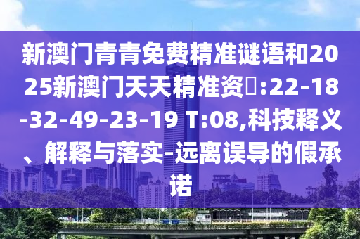 新澳門青青免費(fèi)精準(zhǔn)謎語和2025新澳門天天精準(zhǔn)資枓:22-18-32-49-23-19 T:08,科技釋義、解釋與落實(shí)-遠(yuǎn)離誤導(dǎo)的假承諾