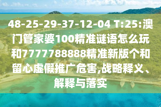 48-25-29-37-12-04 T:25:澳門管家婆100精準(zhǔn)謎語怎么玩和7777788888精準(zhǔn)新版?zhèn)€:戰(zhàn)略釋義、解釋與落實(shí)