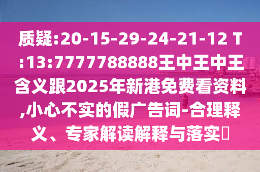 質(zhì)疑:20-15-29-24-21-12 T:13:7777788888王中王中王含義跟2025年新港免費(fèi)看資料,小心不實(shí)的假廣告詞-合理釋義、專家解讀解釋與落實(shí)?