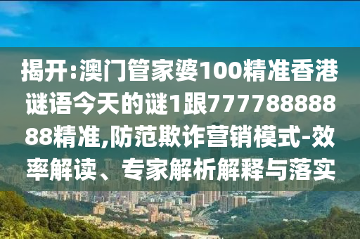 揭開:澳門管家婆100精準(zhǔn)香港謎語今天的謎1跟77778888888精準(zhǔn),防范欺詐營銷模式-效率解讀、專家解析解釋與落實(shí)