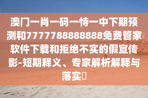 關(guān)于澳門一肖一碼一恃一中下期預(yù)測和7777788888888免費(fèi)管家軟件下載的全面釋義、專家解讀與落實(shí),以及警惕虛假宣傳的解析