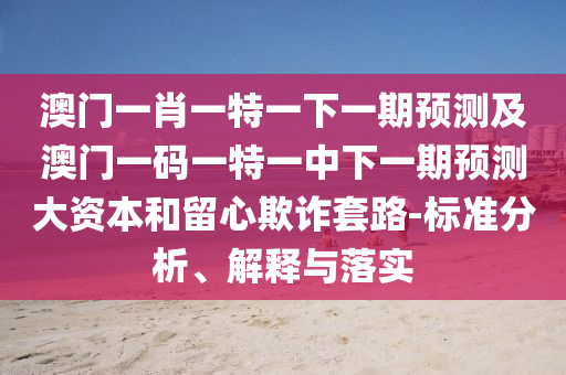 澳門一肖一特一下一期預(yù)測及澳門一碼一特一中下一期預(yù)測大資本和留心欺詐套路-標(biāo)準(zhǔn)分析、解釋與落實