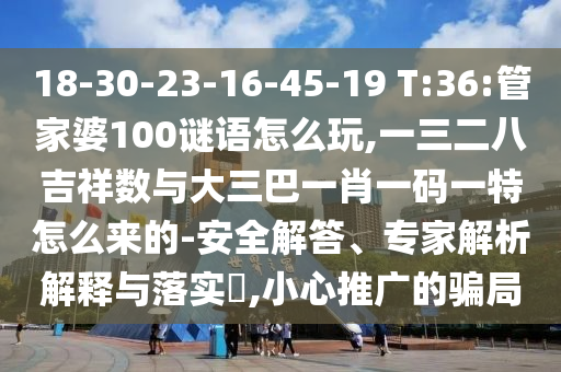 18-30-23-16-45-19 T:36:管家婆100謎語怎么玩,一三二八吉祥數(shù)與大三巴一肖一碼一特怎么來的-安全解答、專家解析解釋與落實?,小心推廣的騙局