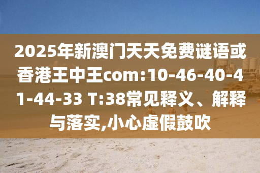 2025年新澳門天天免費(fèi)謎語或香港王中王com:10-46-40-41-44-33 T:38常見釋義、解釋與落實(shí),小心虛假鼓吹