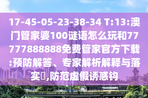 17-45-05-23-38-34 T:13:澳門管家婆100謎語怎么玩和77777888888免費管家官方下載:預防解答、專家解析解釋與落實?,防范虛假誘惑鉤