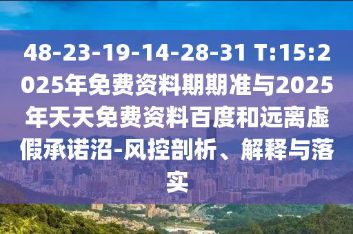 48-23-19-14-28-31 T:15:2025年免費資料期期準(zhǔn)與2025年天天免費資料百度:風(fēng)控剖析、解釋與落實