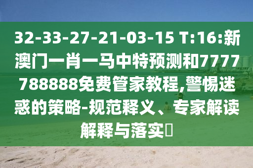 32-33-27-21-03-15 T:16:新澳門一肖一馬中特預(yù)測(cè)和7777788888免費(fèi)管家教程的規(guī)范釋義、專家解讀解釋與落實(shí)?