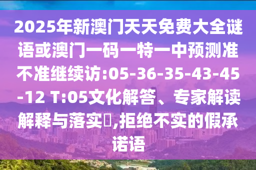 2025年新澳門天天免費大全謎語或澳門一碼一特一中預測準不準繼續(xù)訪:05-36-35-43-45-12 T:05文化解答、專家解讀解釋與落實?,拒絕不實的假承諾語